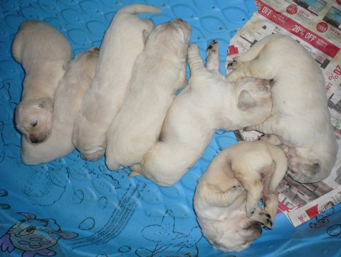 Honestly, I took the sleeping puppies picture ONE minute before Zabeth went in to feed them
